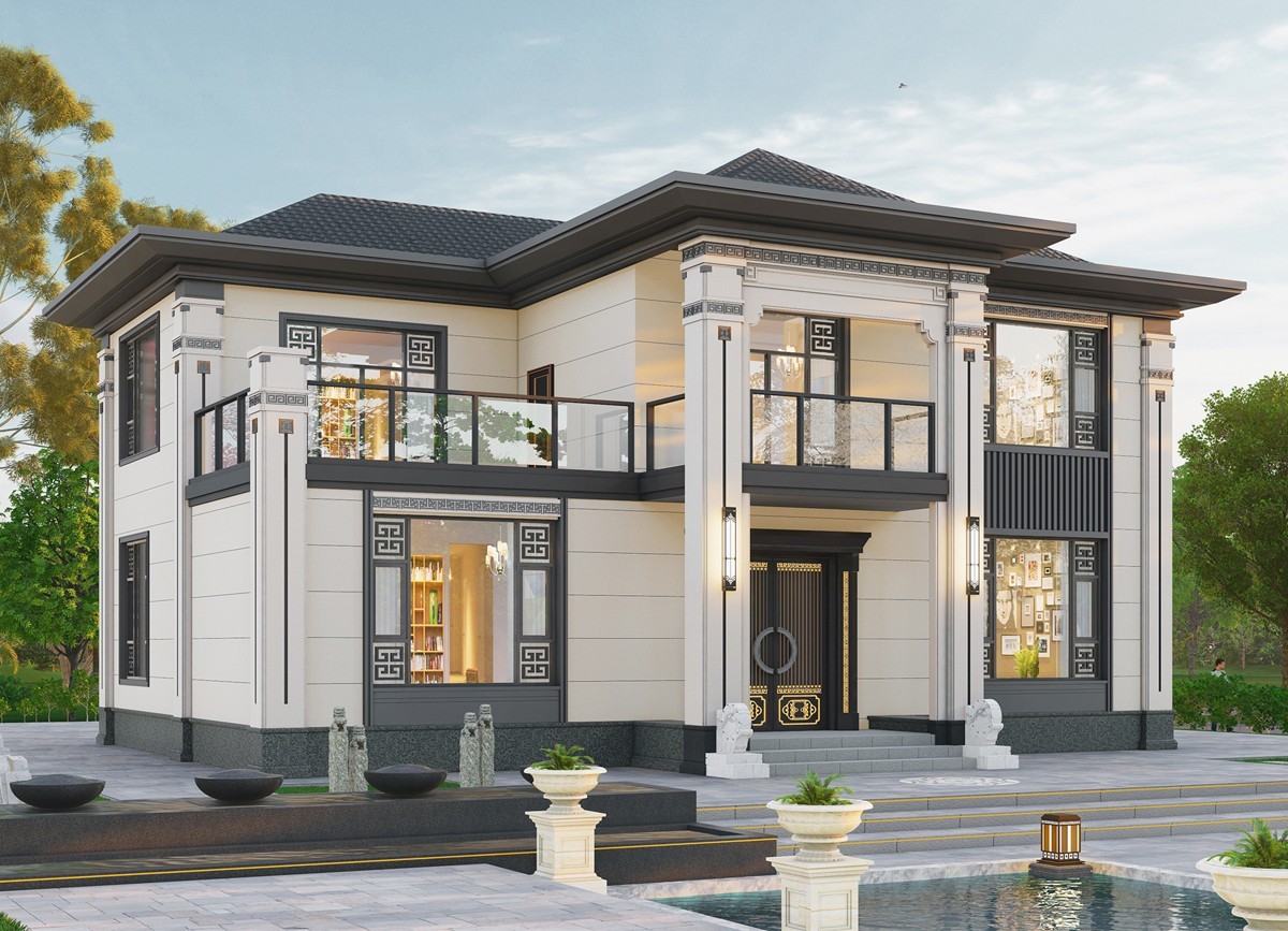 潮州005 两层新中式(11.36x11.76米)-【易设计】