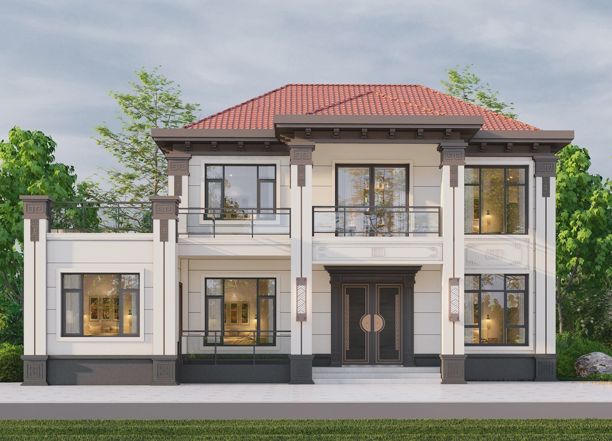 潮州005 两层新中式(11.36x11.76米)-【易设计】